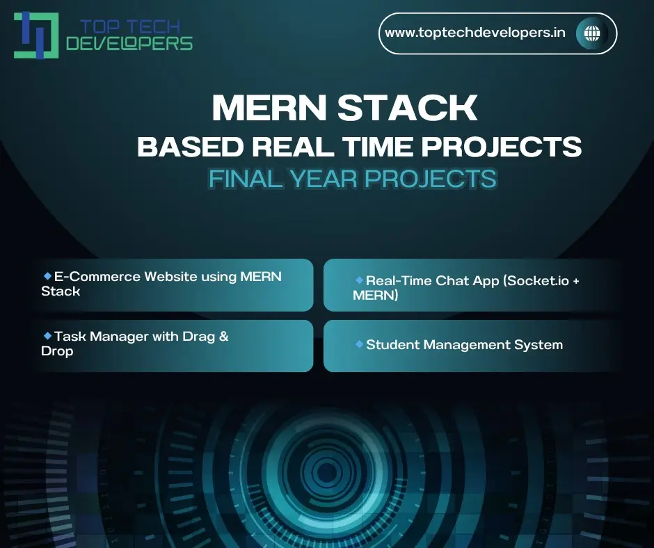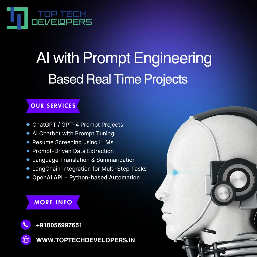 At Top Tech Developers, we provide comprehensive support for final-year projects, IEEE projects, and real-time projects across all engineering and technology streams. Whether you're pursuing Computer Science, IT, ECE, EEE, Mechanical, Civil, or even Biomedical, we provide customized project solutions that match your academic requirements and domain preferences.Our expert team handles all types of projects from Java, Python, and Web Development to Artificial Intelligence, Machine Learning, Data Science, IoT, Android, Blockchain, Embedded Systems, and more. Every project is delivered with source code, full documentation, technical explanations, and hands-on training to help you understand and present your work confidently.